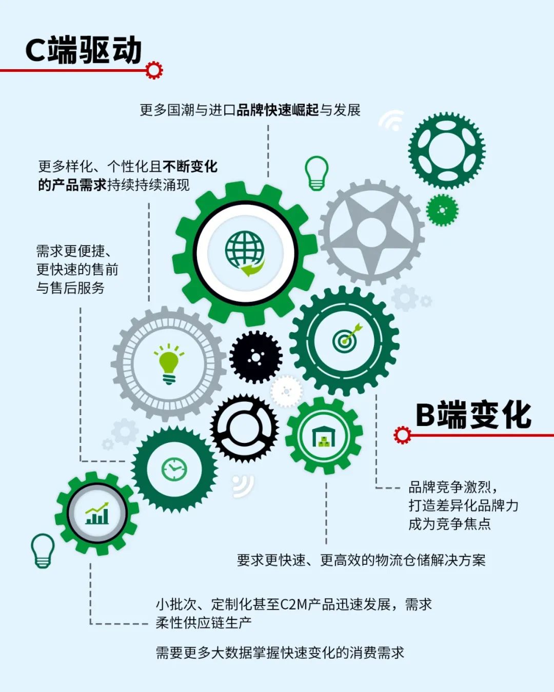 “Z世代”對小而美的跨境品牌關注不斷提升,以黑科技和設計感驅動的小家電品牌在新消費人群中的市場占有率和品牌影響力不斷攀升。以“Z世代”為代表的C端消費的變化,倒逼B端供應鏈升級,主要體現在差異化品牌力凸顯消費者獨特價值主張,柔性供應鏈生產適應小批次、定制化需求,消費大數據讓需求分析、庫存管理更為精細化,高效的物流倉儲方案及時響應消費端需求等幾個方面。