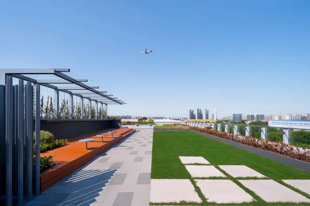 人本化:空間兼具功能性與舒適度,如五層辦公樓、屋頂花園、屋面停車場等;40臺公共新能源充電樁,為租戶及社區提供便利。